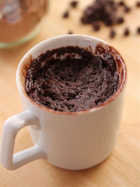 [Image: A delicious-looking chocolate mug cake with chocolate chips]